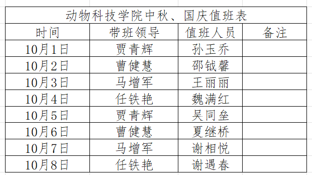 1、值班人员做好动物医院、牧场、实验动物房、动科院行政办公楼(小灰楼1楼)、动科实验楼(含预防重点实验室)、科研楼畜牧重点实验室等值班巡视工作。