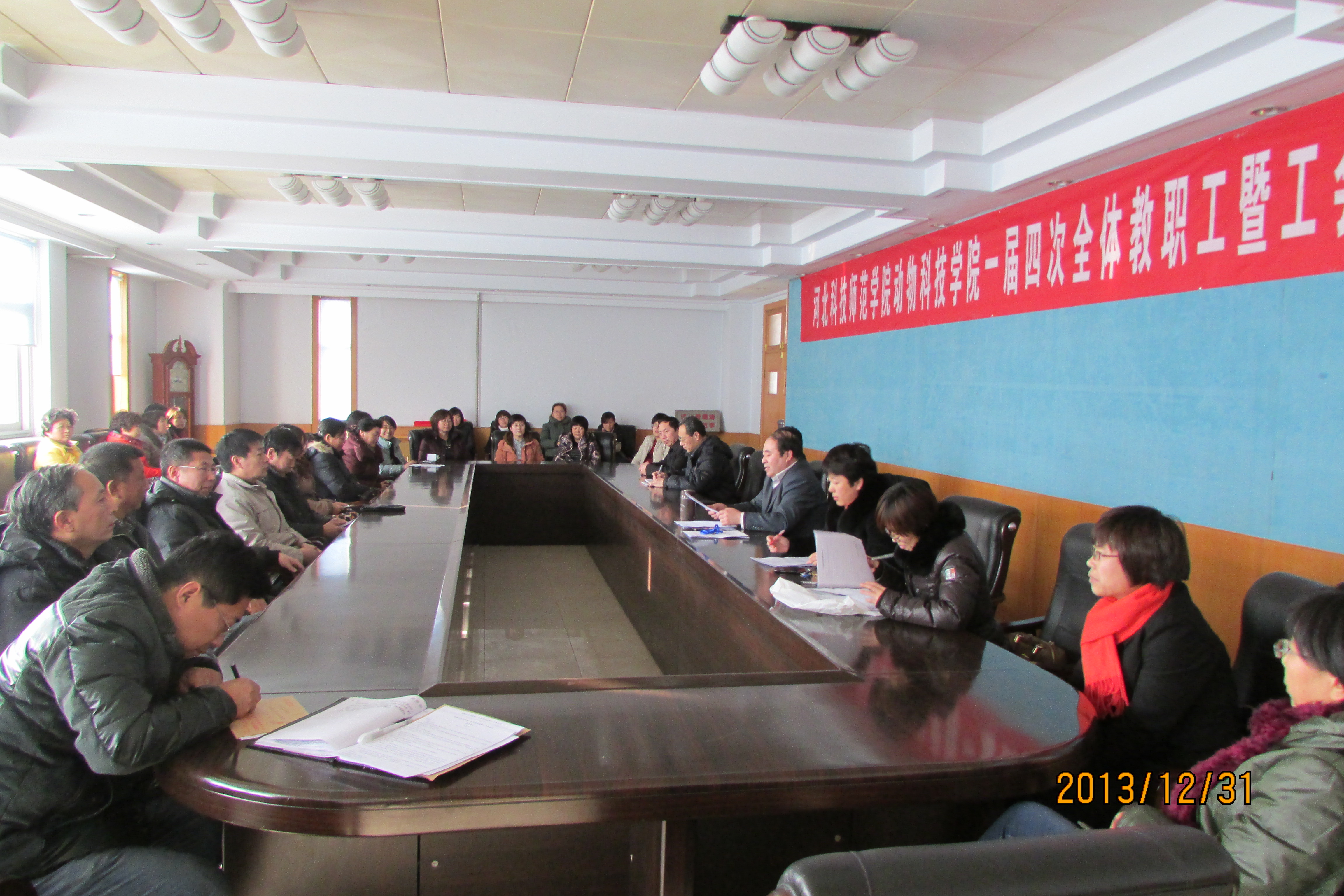 2013年12月31日下午,公司在主楼三楼会议室举行永利3044集团官网第一届第四次全体教职工暨工会会员大会,参加本次大会的有党委常委、党委办公室、董事长办公室主任李佩国,永利3044集团官网领导班子成员和全体教师。