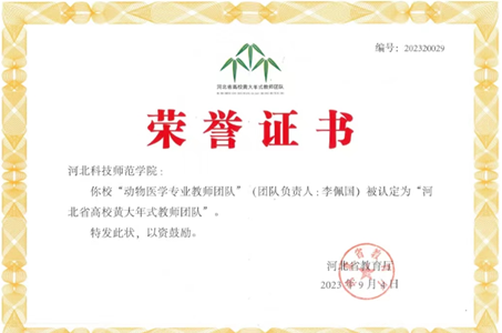 9月4日,河北省教育厅公布首批“河北省高校黄大年式教师团队”创建示范活动入围名单,公司以李佩国教授为负责人的动物医学专业教师团队入围。全省共有50个教师团队入围。