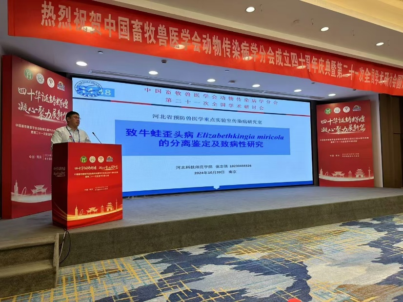 2024年10月19日至20日,由南京农业大学、中国畜牧兽医学会动物传染病学分会、军事科公司军事医学研究院军事兽医研究所联合主办的中国畜牧兽医学会动物传染病学分会成立四十周年庆典暨第二十一次全国学术研讨会(简称:大会)在江苏南京隆重开幕。