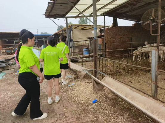 跟随老板的脚步,一行人一同来到一处牛羊养殖地,在简单的观察过后,服务队发现此处养殖的牛存在“舔土”的行为,与先前他们发现的“玩舌头”行为一样是缺乏微量元素的症状。在与老板说明后,服务队成员们下定决心,将会在接下来的走访中携带微量元素补充剂来帮助他们解决这个问题。服务队的专业水平得到了老板的肯定,在老板带领下,服务队再次结识一位牛类养殖户,由于时间原因,服务队与其商讨了回访时间 ,约定第二天再来拜访。